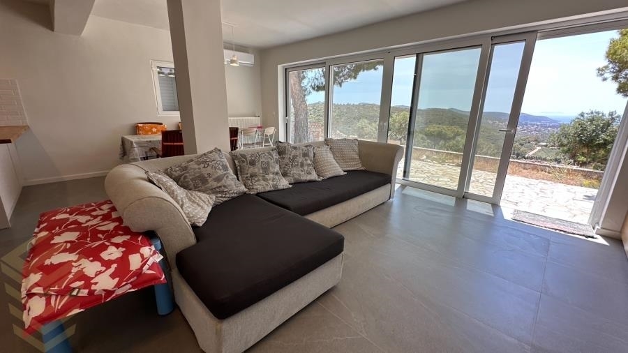 Keratea, Synterina, Maisonette For Sale, 163 sq.m., In Plot 1000 sq.m., Property Status: Amazing, Floor: Ground floor, 3 Level(s), 2 Bedrooms 1 Kitchen(s), 2 Bathroom(s), 2 WC, Heating: Autonomous - Petrol, View: Mountain View + Sea view, Building Year: 1992, Energy Certificate: E, 1 parking(s), Floor type: Tiles, Type of door frames: Aluminum, Features: Security door, Security alarm, Storage room, Fireplace, Attic, Electric Appliances, Playroom, Internal Staircase, Double Glazed Windows, Window Screens, Balconies, Pets Allowed, No shared expenses, Luxury, Mansion, Airy, Roadside, Bright, AirConditioning, Solar water system, Boiler, Painted, Renovated.An amazing spot for relaxation and tranquility after the fatigue of the city and its noise.This is an excellent property with a huge open horizon in Anavyssos and Palaia Fokaia. It is located in Synterina Keratea and in a small complex of maisonettes, independent of each other, with their own garden of 1,000 square meters each.The garden alone gives you the opportunity to cultivate or plant anything you want and eliminate the stress of everyday life!It can also be a swimming pool but only above ground, but as the plot is on one side it will be at the same level as the living room with the fireplace and the kitchen.The house is developed on 3 levels. The entrance to the house is on the middle level (0) which has a bedroom, a bathroom and a small space for a sofa of 37.7 square meters.The levels communicate with each other by a wooden staircase only.On the upper level (A) there is a bedroom, a small kitchenette for the use of the bedroom and a bathroom. The surface area of the A level is 37.7 square meters.On Level -1, below the Main entrance we find the Kitchen, living room, living room, dining room and the Fireplace of the home, and a WC. This level has an area of 89.83 square meters and goes directly to the garden and the garden terrace.There is a storage room with the boiler room which is huge, heating per level with oil, Boiler for hot water from the radiator, and air conditioners. The property is given as it is in the photos with the furniture and electrical appliances and is ready for immediate occupancy.The materials used in the renovation of the home in 2020 are of excellent quality and this is evident at first glance!! You can watch the video :https://www.youtube.com/watch?v=ThyOmEMovsc