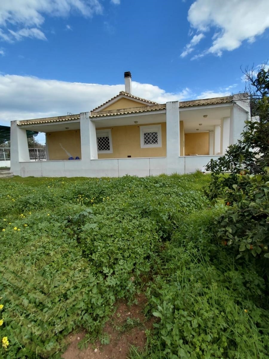 Korinthia, Examilia, Detached house For Sale, 151 sq.m., In Plot 1859,92 sq.m., Property Status: Good, Floor: Ground floor, 1 Level(s), 3 Bedrooms (2 Master), 1 Kitchen(s), 3 Bathroom(s), Heating: None - Electricity, View: Οutdoors, Building Year: 1986, Energy Certificate: D, 4 parking(s), Floor type: Marble, Type of door frames: Aluminum, Features: Storage room, Fireplace, Triple Glazed Windows, No shared expenses, Price Negotiable, Airy, Roadside, Bright, Solar water system, Stadium, Automatic Watering, Trees.A pretty good opportunity in Examilia, Corinth.The property is located on a plot of 1859.92 square meters and has a surface of 151.20 square meters on one level.Inside the property there is a warehouse of 34.40 square meters and a water tank 85 cubic meters for watering the garden and trees.The property needs renovation but can be inhabited as is.There is also a ready-made pit in the surrounding area for the construction of a swimming pool!It is located outside the settlement of Examilia and next to the Kalamata-Corinth National Road. It has a view of Ancient Corinth!There are also several fruit trees in the Garden. The property is ready for transfer.It is an opportunity that deserves your due attention!