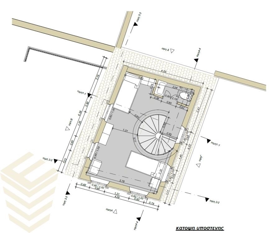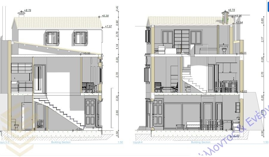 Общая площадь застройки составляет 105,40 квадратных метров и разделена на 3 уровня: