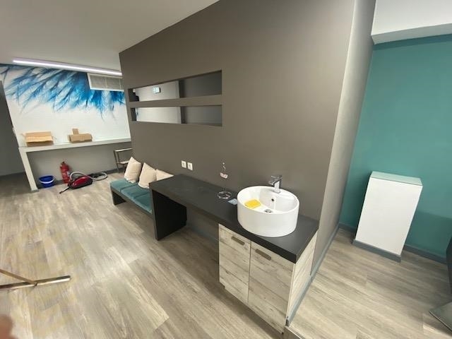 夹层80平方米,设有5个美甲/足疗工位、2个足浴池、一个化妆工位和一个独立的脱毛区。